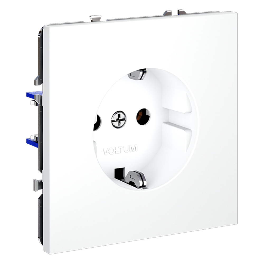 Место установки. Простота установки и демонтажа, стильный дизайн и высокое качество делают розетки Voltum идеальным выбором для дома, офиса или любых других помещений, соответствующих инструкции по эксплуатации. Корпус. Внешние накладки и корпус выполнены из поликарбоната — долговечного и безопасного материала. Он не разлагается под действием ультрафиолета и стойко выдерживает повышенные температуры, вызванные протекающими токами. Конструктивные особенности. Контактные пары выполнены из бронзы, а заземляющие контакты — с дополнительным гальваническим покрытием. Бронза обеспечивает высокую безопасность при подключении электроприборов и эффективную бесперебойную передачу тока, сохраняя передаточное усилие, что повышает срок безотказной эксплуатации.
