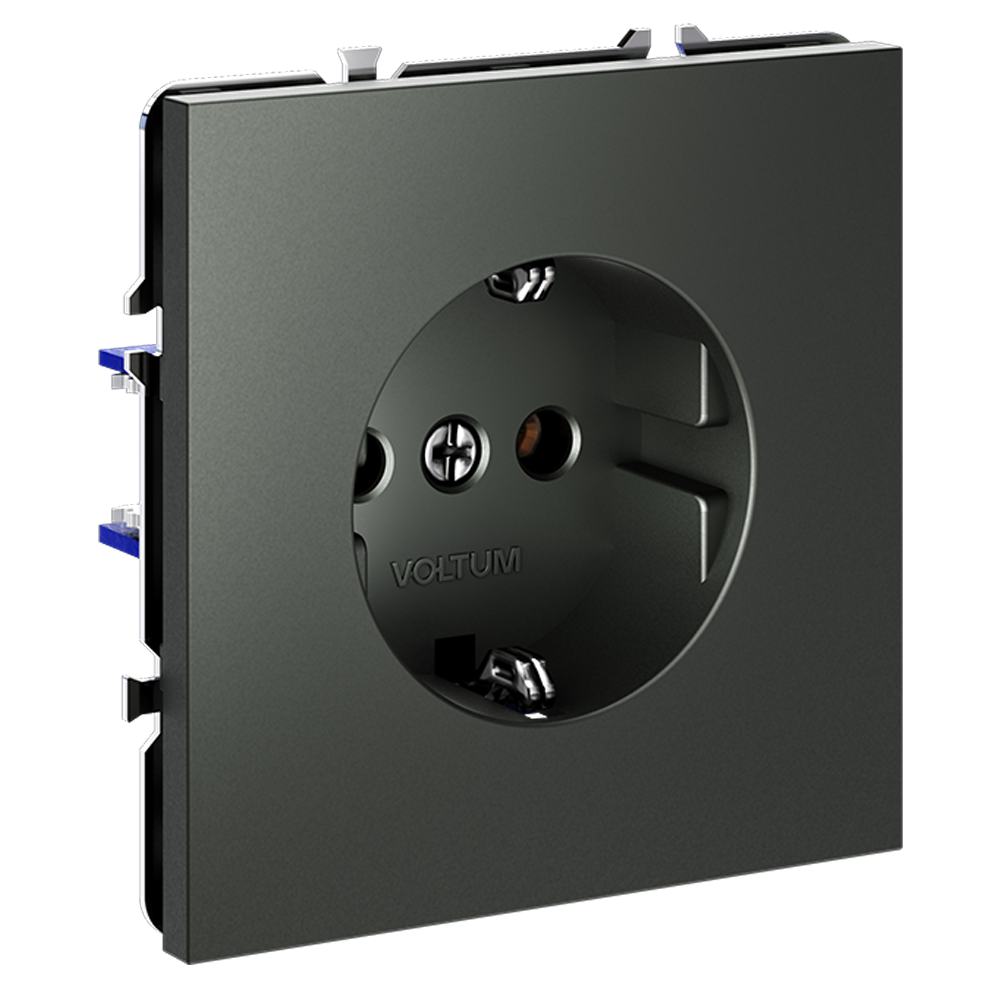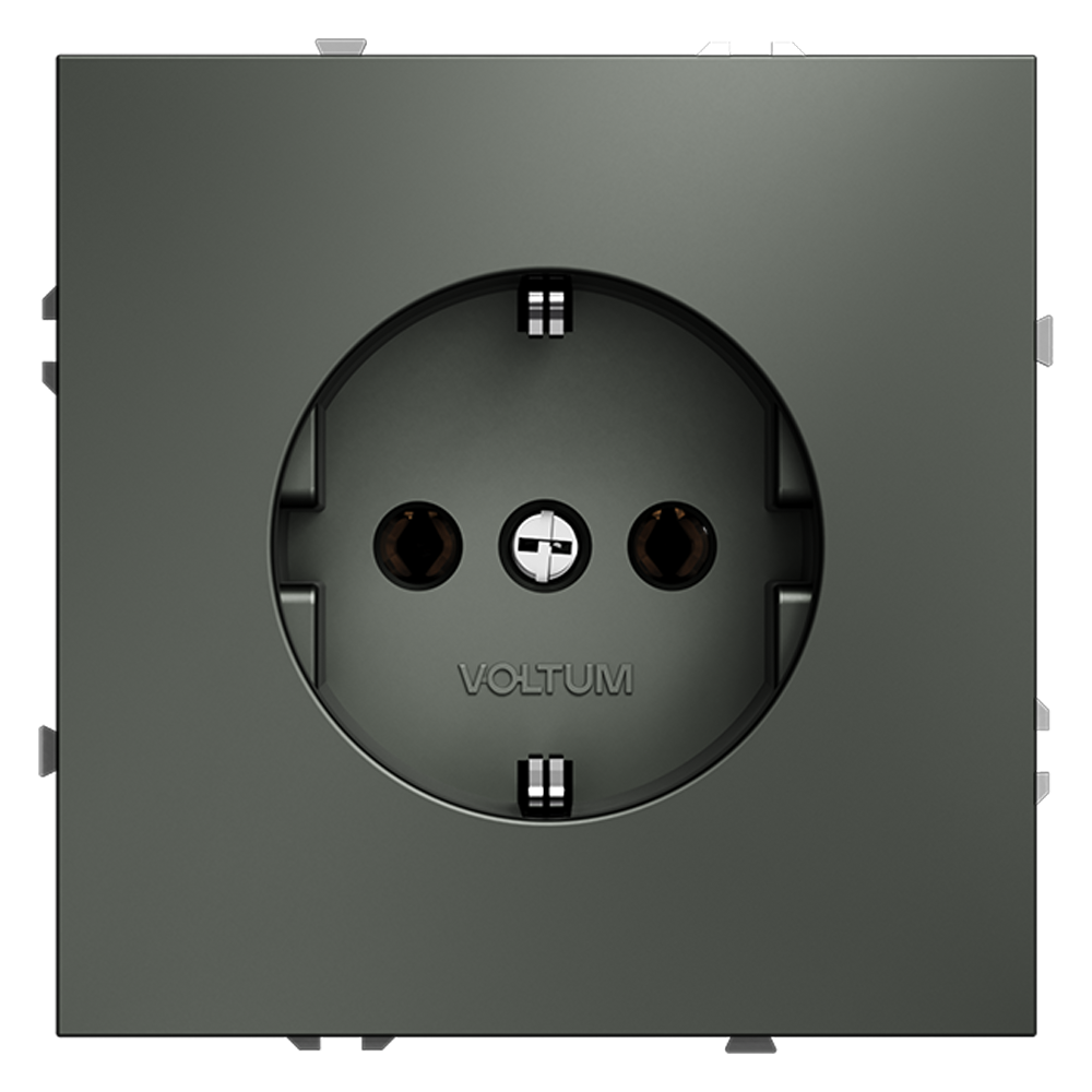 Место установки. Простота установки и демонтажа, стильный дизайн и высокое качество делают розетки Voltum идеальным выбором для дома, офиса или любых других помещений, соответствующих инструкции по эксплуатации. Корпус. Внешние накладки и корпус выполнены из поликарбоната — долговечного и безопасного материала. Он не разлагается под действием ультрафиолета и стойко выдерживает повышенные температуры, вызванные протекающими токами. Конструктивные особенности. Контактные пары выполнены из бронзы, а заземляющие контакты — с дополнительным гальваническим покрытием. Бронза обеспечивает высокую безопасность при подключении электроприборов и эффективную бесперебойную передачу тока, сохраняя передаточное усилие, что повышает срок безотказной эксплуатации.