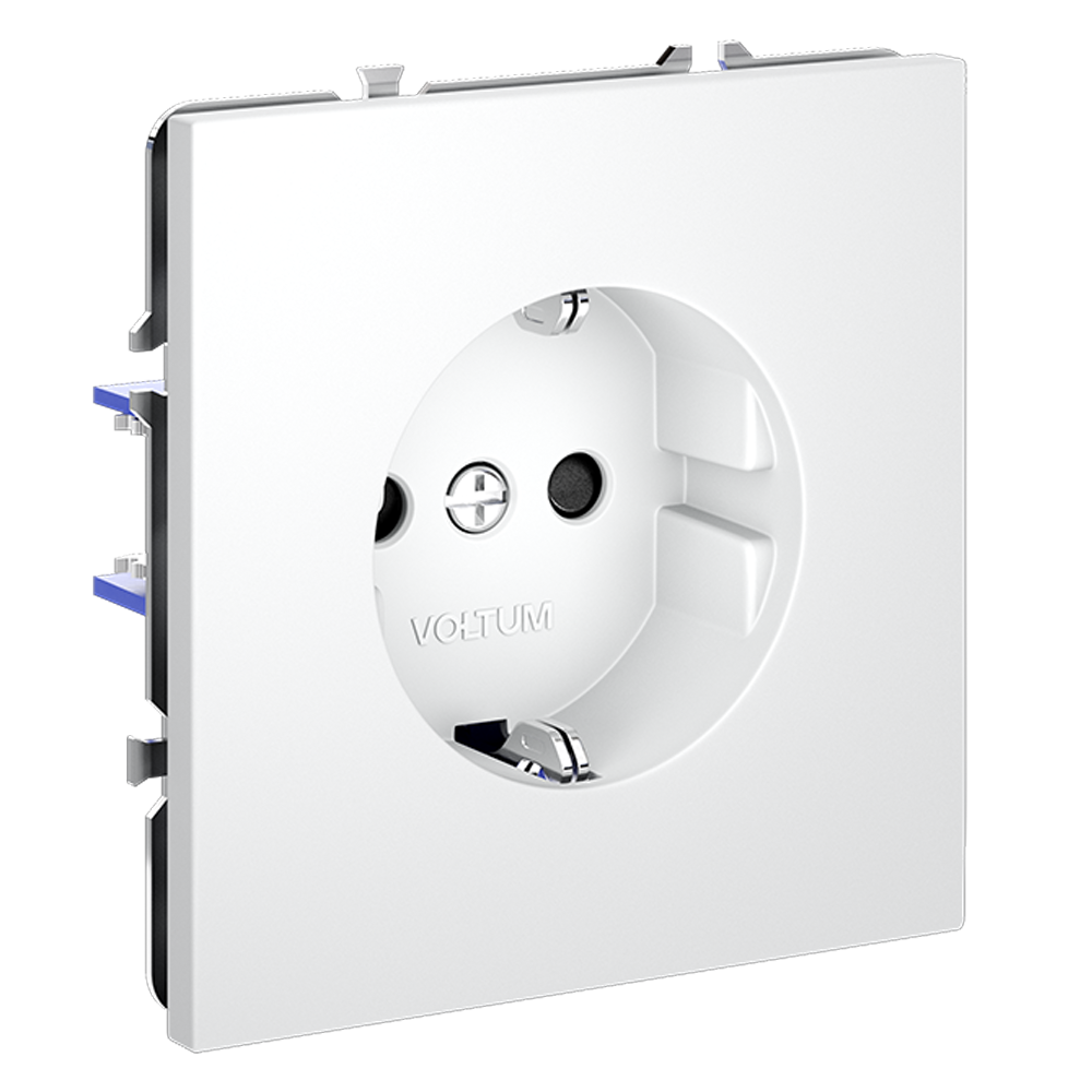 Место установки. Простота установки и демонтажа, стильный дизайн и высокое качество делают розетки Voltum идеальным выбором для дома, офиса или любых других помещений, соответствующих инструкции по эксплуатации. Корпус. Внешние накладки и корпус выполнены из поликарбоната — долговечного и безопасного материала. Он не разлагается под действием ультрафиолета и стойко выдерживает повышенные температуры, вызванные протекающими токами. Конструктивные особенности. Контактные пары выполнены из бронзы, а заземляющие контакты — с дополнительным гальваническим покрытием. Бронза обеспечивает высокую безопасность при подключении электроприборов и эффективную бесперебойную передачу тока, сохраняя передаточное усилие, что повышает срок безотказной эксплуатации.