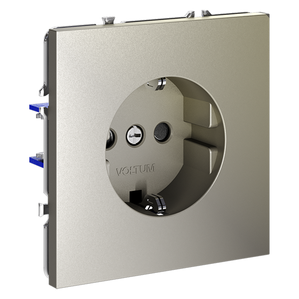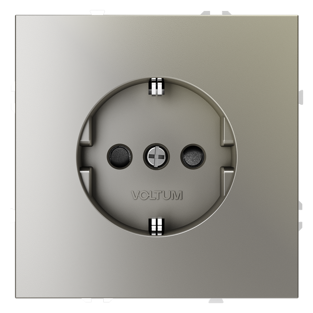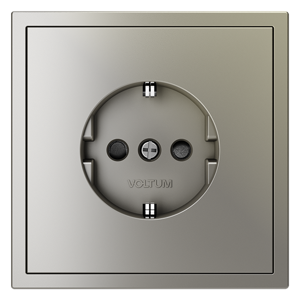 Место установки. Простота установки и демонтажа, стильный дизайн и высокое качество делают розетки Voltum идеальным выбором для дома, офиса или любых других помещений, соответствующих инструкции по эксплуатации. Корпус. Внешние накладки и корпус выполнены из поликарбоната — долговечного и безопасного материала. Он не разлагается под действием ультрафиолета и стойко выдерживает повышенные температуры, вызванные протекающими токами. Конструктивные особенности. Контактные пары выполнены из бронзы, а заземляющие контакты — с дополнительным гальваническим покрытием. Бронза обеспечивает высокую безопасность при подключении электроприборов и эффективную бесперебойную передачу тока, сохраняя передаточное усилие, что повышает срок безотказной эксплуатации.