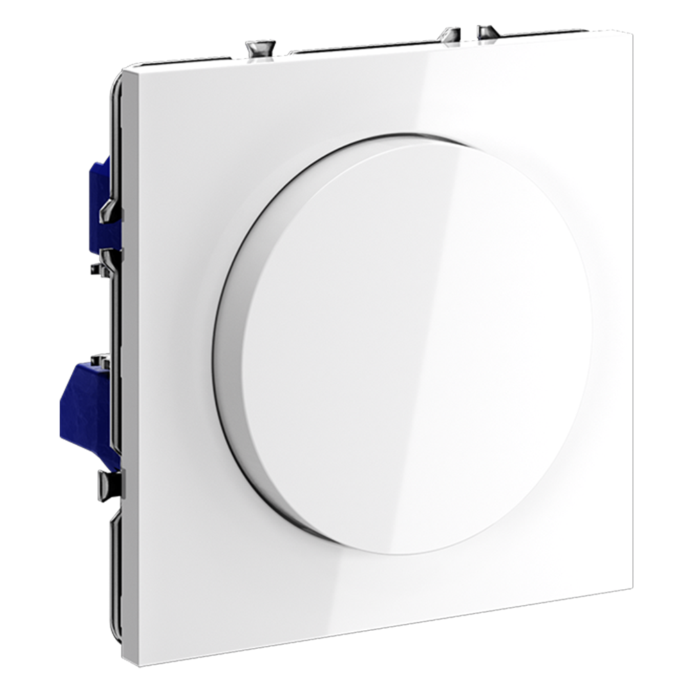 Место установки. Светорегулятор необходим для управления яркостью освещения в помещении. Устройство совместимо с любым источником света, поддерживающим фазное диммирование. Корпус. Светорегулятор выполнен в виде вращающейся кнопки, позволяющей регулировать яркость в широком диапазоне. При нажатии на нее устройство работает как выключатель (включает/выключает освещение). Корпус — устойчивый к повреждениям и нагреву поликарбонат. Конструктивные особенности. Максимальная резистивная нагрузка светорегулятора — 300 Вт, минимальная — 5 Вт. Можно подключить устройство как обычный выключатель или по проходной схеме. Диммирование базируется на методе отсечения по заднему фронту, что гарантирует совместимость со светодиодными лампами и исключает появление резких колебаний напряжения. Ток увеличивается плавно, что особенно важно для сохранения производительности и долговечности светодиодных источников. Предусмотрена регулировка ограничения минимального уровня яркости (под накладкой механизма).