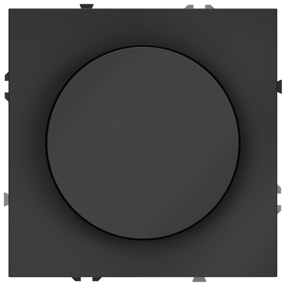 Место установки. Светорегулятор необходим для управления яркостью освещения в помещении. Устройство совместимо с любым источником света, поддерживающим фазное диммирование. Корпус. Светорегулятор выполнен в виде вращающейся кнопки, позволяющей регулировать яркость в широком диапазоне. При нажатии на нее устройство работает как выключатель (включает/выключает освещение). Корпус — устойчивый к повреждениям и нагреву поликарбонат. Конструктивные особенности. Максимальная резистивная нагрузка светорегулятора — 300 Вт, минимальная — 5 Вт. Можно подключить устройство как обычный выключатель или по проходной схеме. Диммирование базируется на методе отсечения по заднему фронту, что гарантирует совместимость со светодиодными лампами и исключает появление резких колебаний напряжения. Ток увеличивается плавно, что особенно важно для сохранения производительности и долговечности светодиодных источников. Предусмотрена регулировка ограничения минимального уровня яркости (под накладкой механизма).