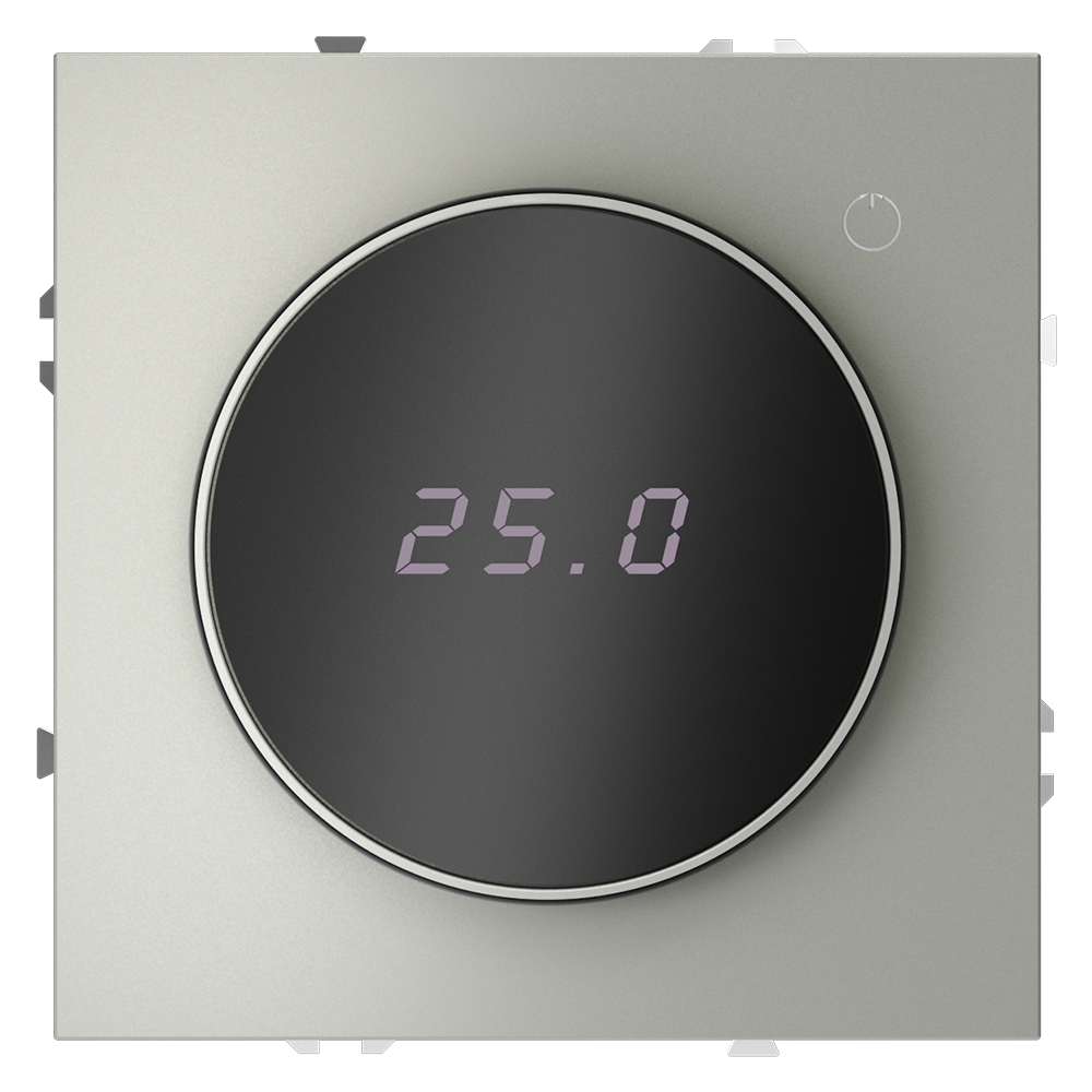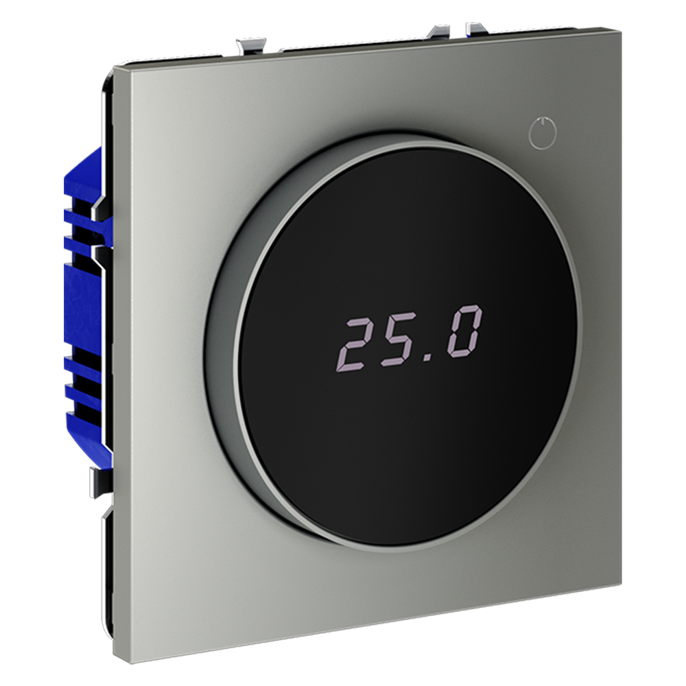 Место установки. Терморегуляторы Voltum предназначены для регулирования температуры теплого пола. Актуальны как в городских квартирах, так и в загородных дачных домах без центрального отопления. Корпус. Дизайн терморегуляторов Voltum сочетается со стилем остальных электрических устройств компании. Они совместимы со всеми рамками. Материал внешних декоративных элементов — поликарбонат. Конструктивные особенности. Терморегуляторы работают с любыми типами теплых полов и рассчитаны на нагрузку до 3500 Вт. Устройства оснащены светодиодной индикацией режима и дисплеем, на котором отображается температура поверхности пола. Красный индикатор — «подача питания на нагревательный кабель (идет процесс нагрева)», отсутствие индикации — «заданная температура достигнута». В течение 15 минут после нагрева терморегулятор переходит в интеллектуальный «спящий режим», уменьшая яркость подсветки цифр и сокращая энергопотребление. Регулировка осуществляется вращением панели управления. Терморегулятор поставляется в комплекте с механизмом из пластиковой накладки и датчиком температуры.