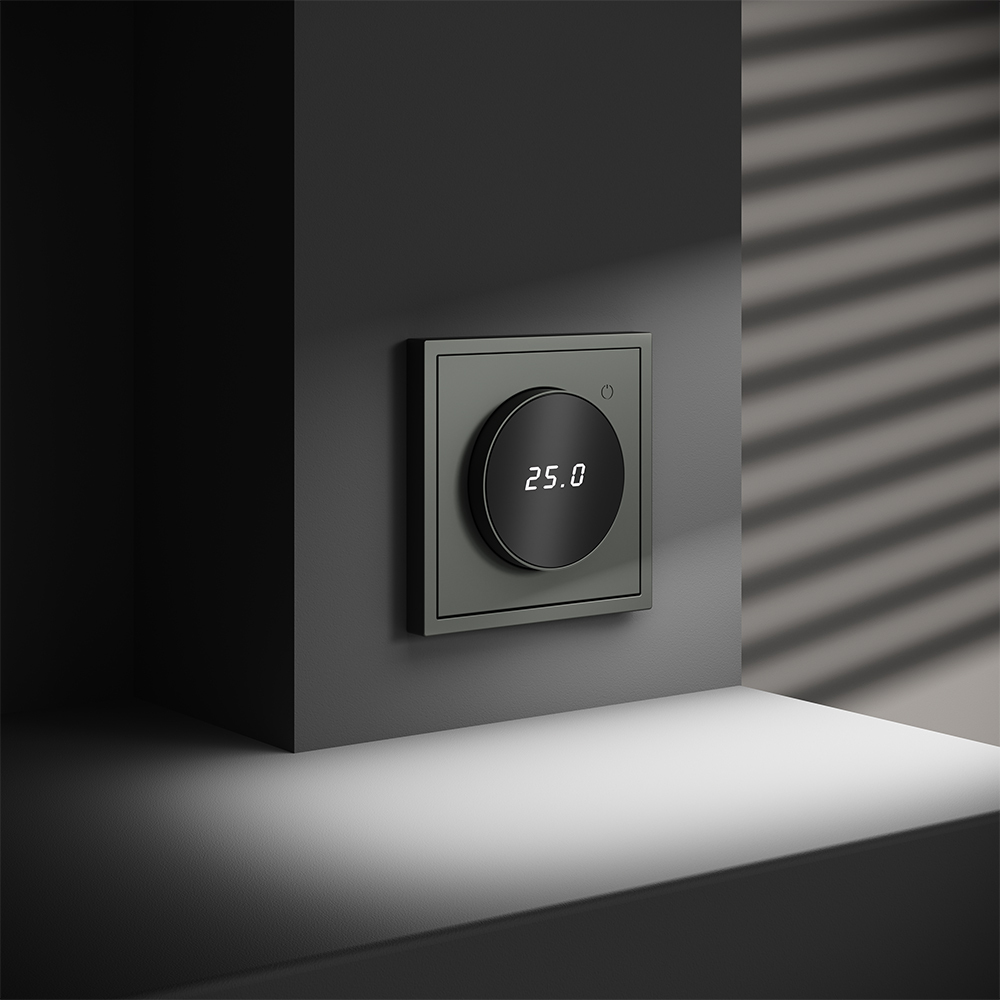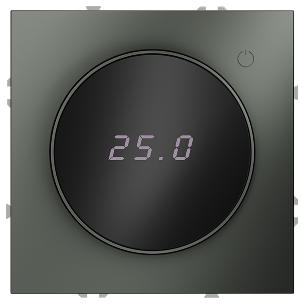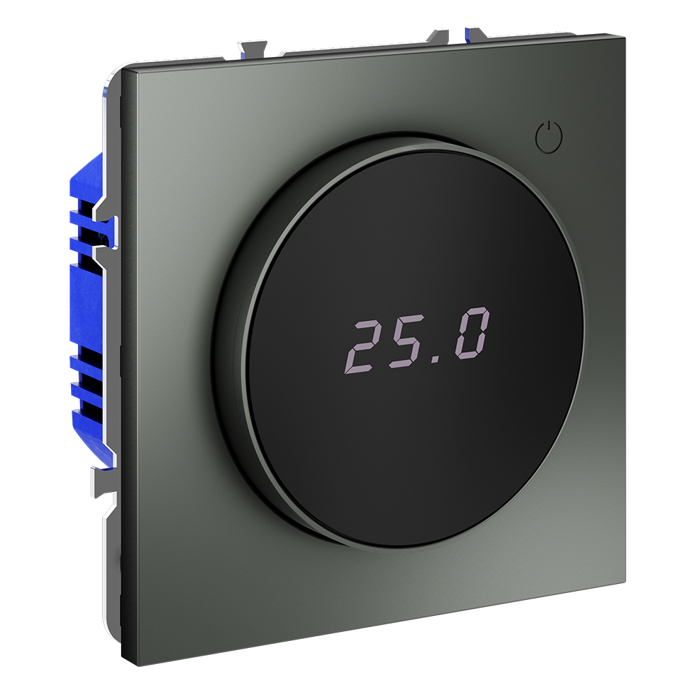 Место установки. Терморегуляторы Voltum предназначены для регулирования температуры теплого пола. Актуальны как в городских квартирах, так и в загородных дачных домах без центрального отопления. Корпус. Дизайн терморегуляторов Voltum сочетается со стилем остальных электрических устройств компании. Они совместимы со всеми рамками. Материал внешних декоративных элементов — поликарбонат. Конструктивные особенности. Терморегуляторы работают с любыми типами теплых полов и рассчитаны на нагрузку до 3500 Вт. Устройства оснащены светодиодной индикацией режима и дисплеем, на котором отображается температура поверхности пола. Красный индикатор — «подача питания на нагревательный кабель (идет процесс нагрева)», отсутствие индикации — «заданная температура достигнута». В течение 15 минут после нагрева терморегулятор переходит в интеллектуальный «спящий режим», уменьшая яркость подсветки цифр и сокращая энергопотребление. Регулировка осуществляется вращением панели управления. Терморегулятор поставляется в комплекте с механизмом из пластиковой накладки и датчиком температуры.