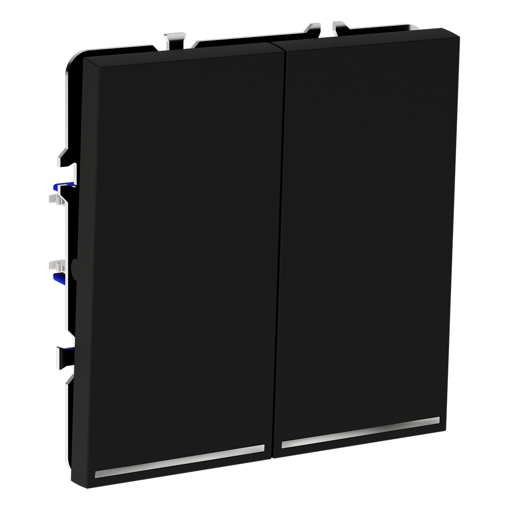 Выключатель встраиваемый VOLTUM S70 двухклавишный с подсветкой 10А, (черный матовый)