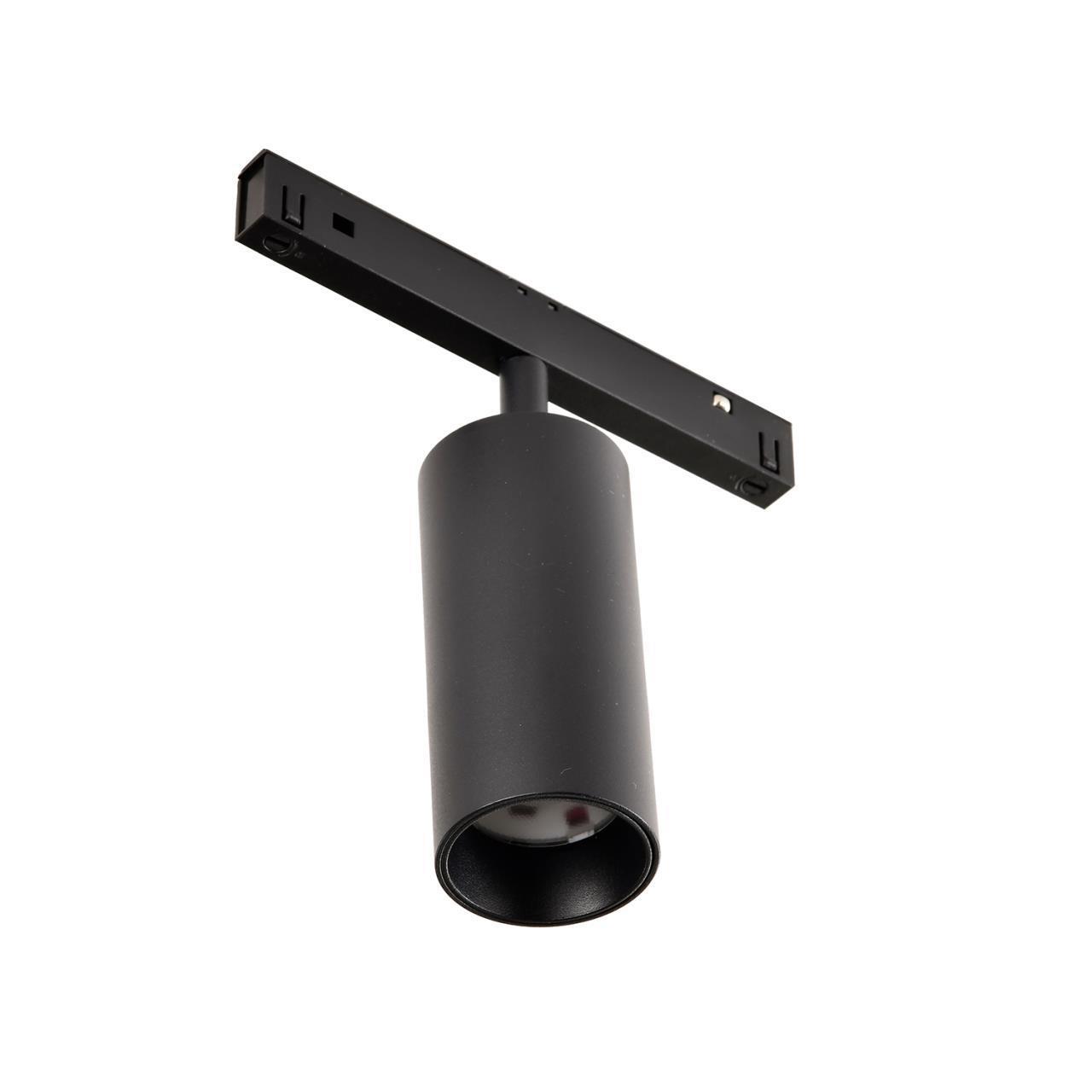 Трековый поворотный светильник в цилиндрическом корпусе черного цвета, угол рассеивания света 36°.