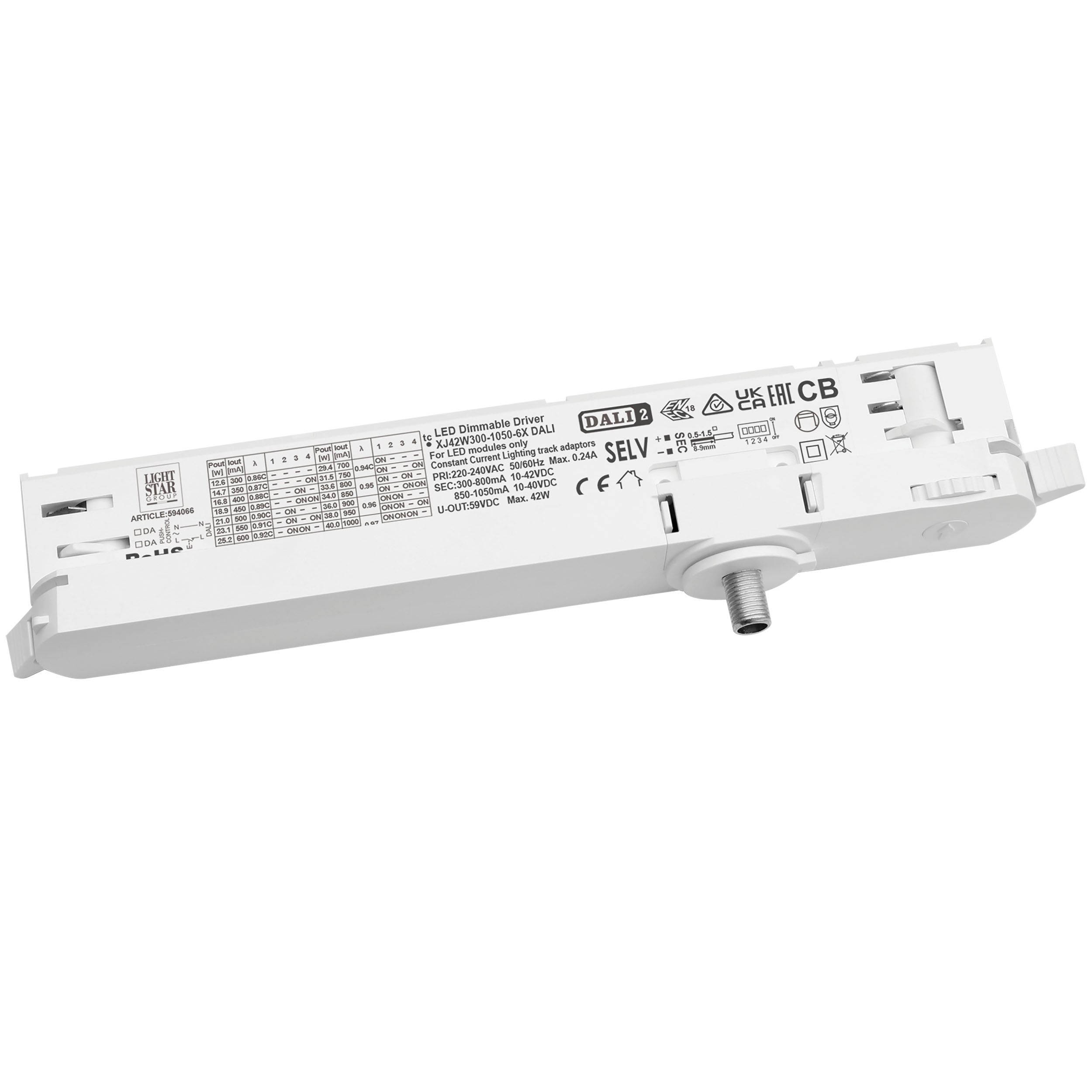 594066 Адаптер с драйвером с DIP-switch управляемый по DALI д/трек-системы QUATTRO к 2151XX, 2152XX, 2153XX, 2154XX, 2155XX, 2156XX, 2157XX БЕЛЫЙ DIM