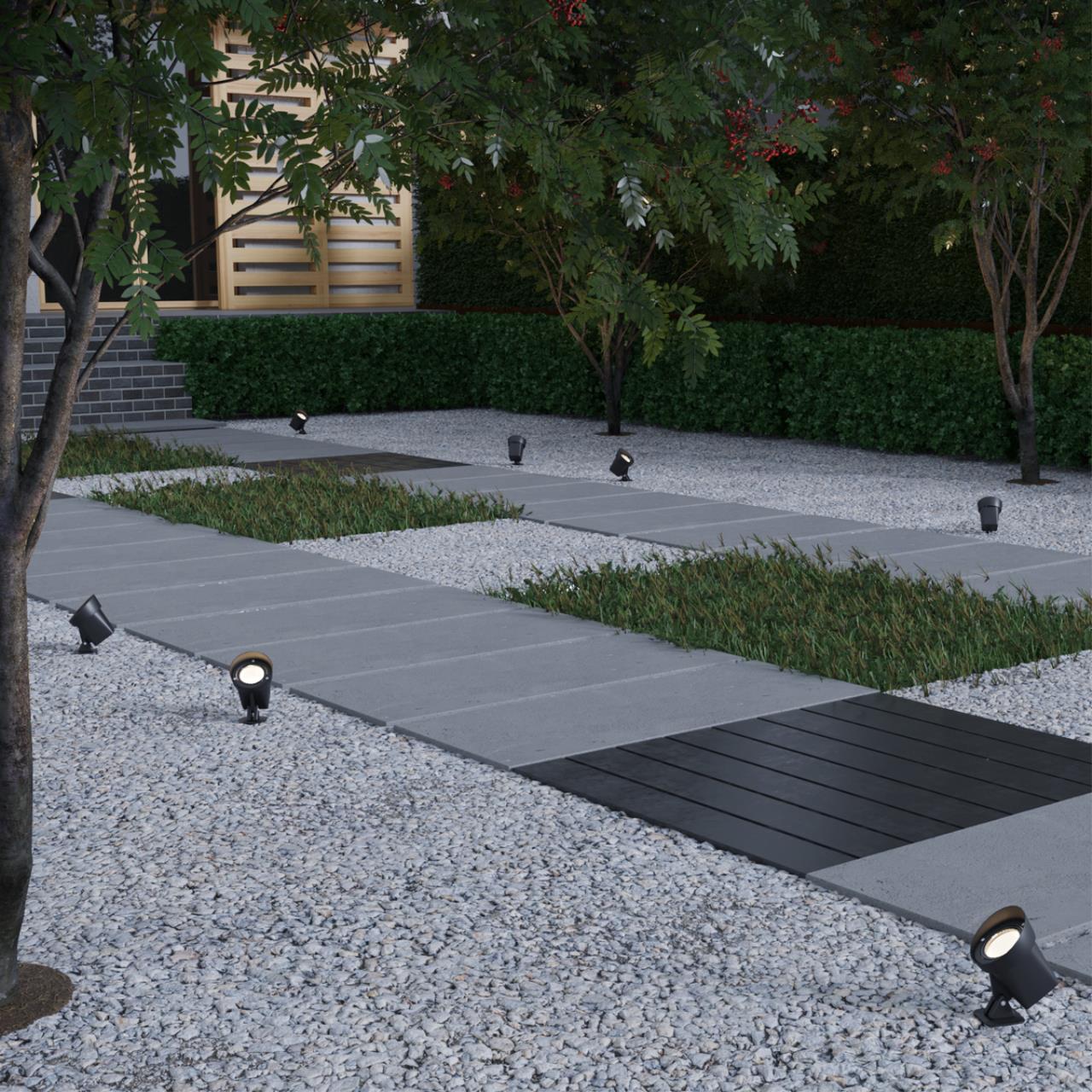 Ландшафтные светодиодные грунтовые светильники LANDSCAPE предназначены для подсветки кустов и деревьев. Они крепятся в грунт с помощью основания/колышка и похожи на небольшие прожекторы с регулируемым уровнем наклона. Дают направленный пучок света с углом рассеивания 15°.
